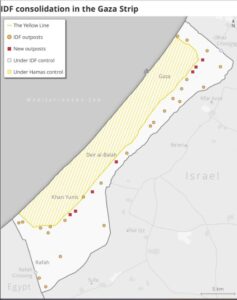 Linija razdvajanja između Izraelskih odbrambenih snaga i Hamasa u Pojasu Gaze – Žuta linija – postaje sve čvršća fizička granica. Posljednjih mjeseci, Izraelske odbrambene snage (IDF) uspostavile su nove ispostave duž linije, izvodeći infrastrukturne radove i prenoseći opremu i objekte, prema analizi nedavnih satelitskih snimaka.